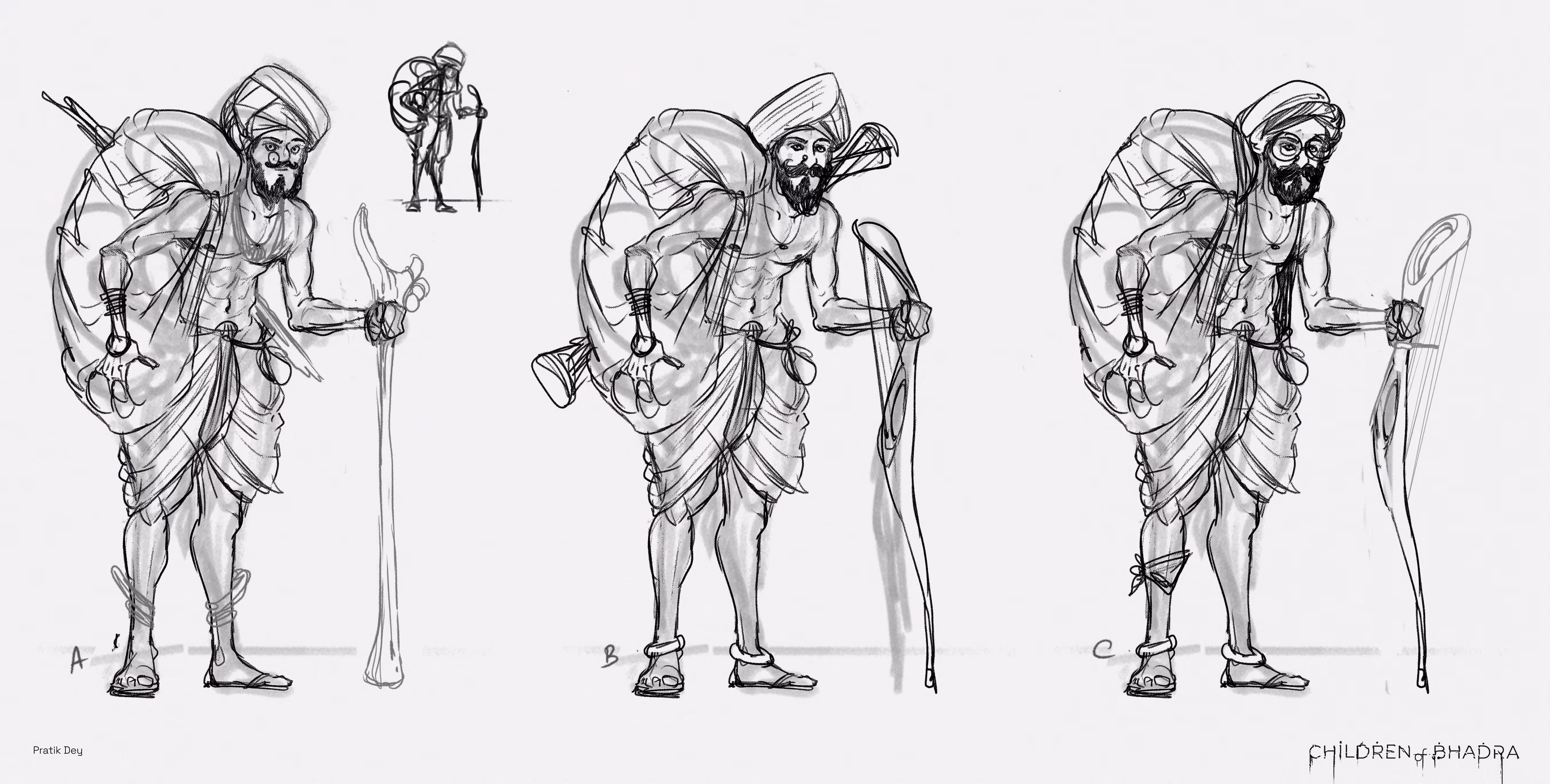 The Cursed Bard: A nomadic musician with a haunting past. Orphaned and cursed, Tarang wanders the land, seeking solace in music and whispering prayers to Bhadra, the enigmatic demi-god they call "father."