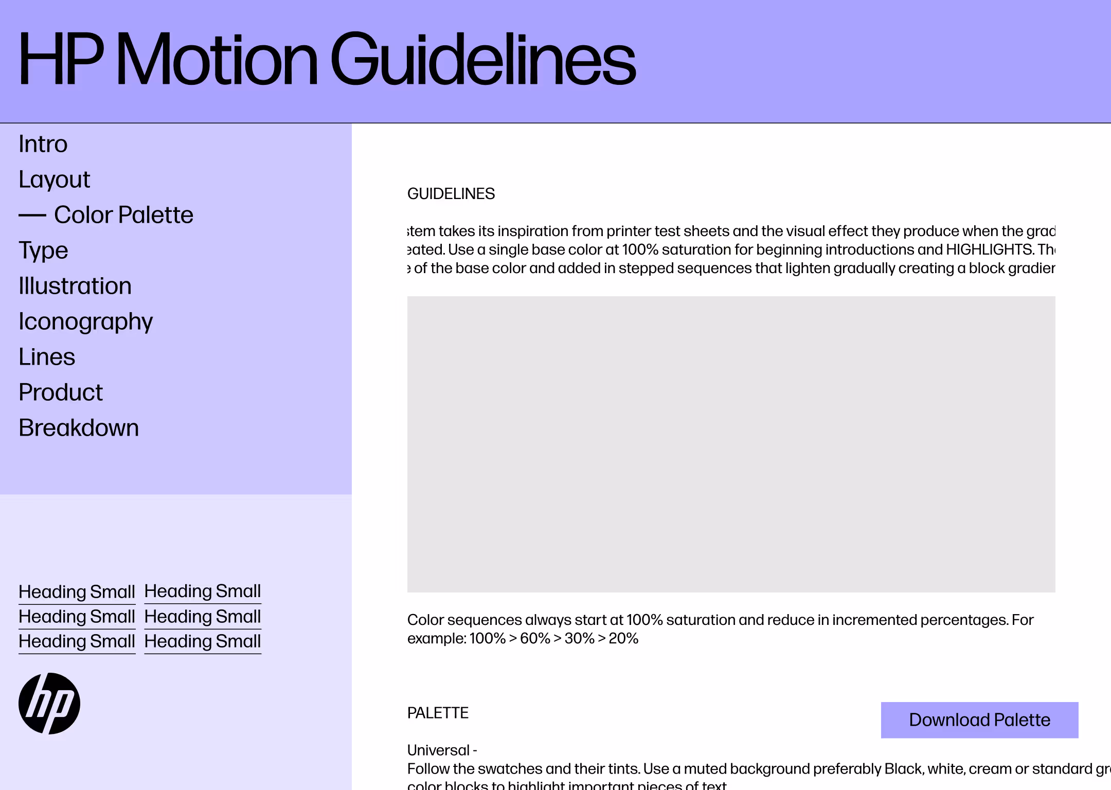 The scope was to create a responsive, public URL as the definitive source for HP Brand Guidelines. Though not launched, it informed the final brand design. Check out the live site below-